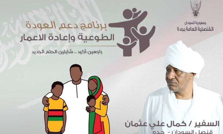 أطلقت القنصلية العامة لجمهورية السودان بجدة، مساء أمس، برنامج العودة الطوعية للمواطنين السودانيين المقيمين بالمملكة العربية السعودية، وذلك خلال احتفال رسمي شهد تدشين أعمال اللجنة العليا للعودة الطوعية، التي تضم أكثر من خمسة آلاف مواطن مسجل ضمن البرنامج.