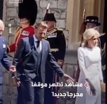 وبحسب سي ان ان عربية ظهر تقدم بريجيت على زوجها الذي كان يسير إلى جانب العاهل البريطاني، الملك تشارلز الثالث وزوجته الملكة كاميلا وعند مد الرئيس الفرنسي يده ليمسك يدها ظهر وكأنها تبعد يدها وتواصل سيرها.